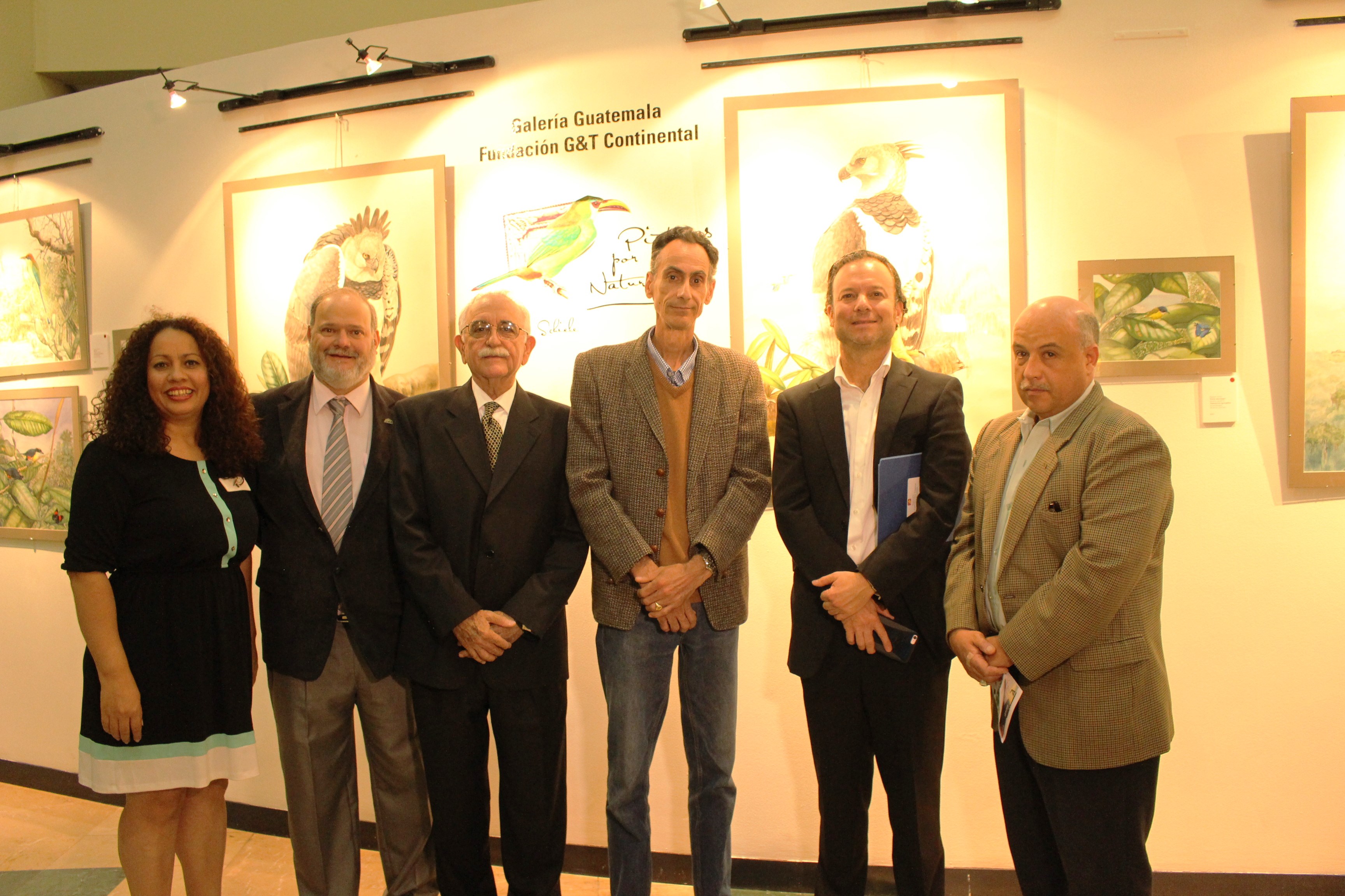 Yanira Gálvez, subdirectora de Fundación G&T Continental, Óscar Núñez, director Defensores de la Naturaleza, Estuardo Cuestas, presidente de Fundación G&T Continental, Robin Schiele, artista, Juan Mini, defensores de la Naturaleza y Luis Luján, presidente Defensores de la Naturaleza.