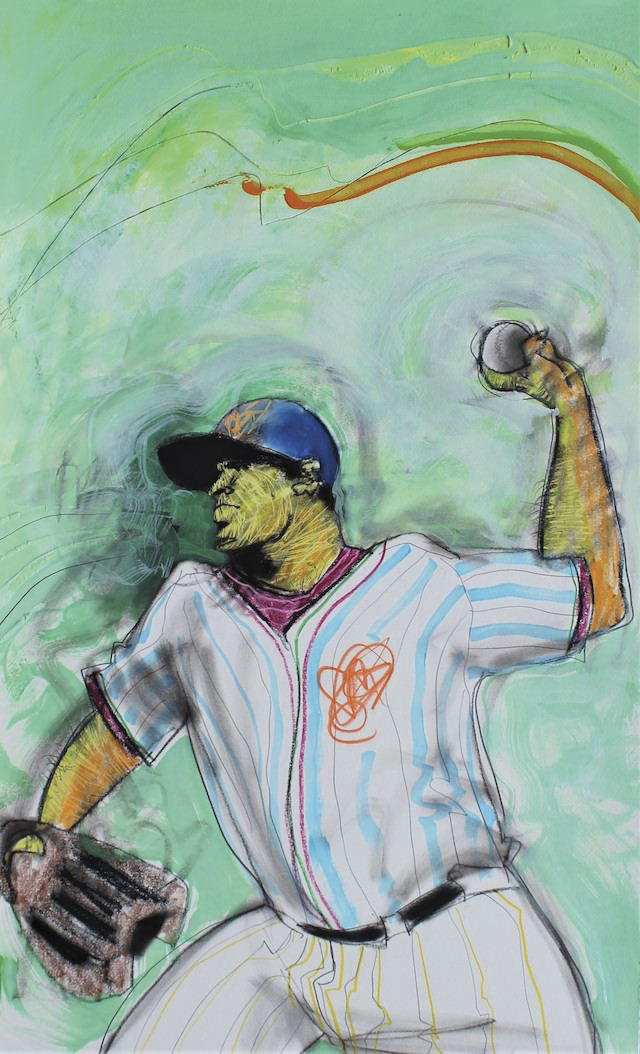 Su obra, diversa en técnicas y, en ocasiones, controvertida en temas, retrata diferentes temas alrededor del ídolo deportivo y su influencia en las masas y, de allí, surgen los caballos, ciclistas y beisbolistas, en medios como pintura al óleo, collage y serigrafías, entre otros.