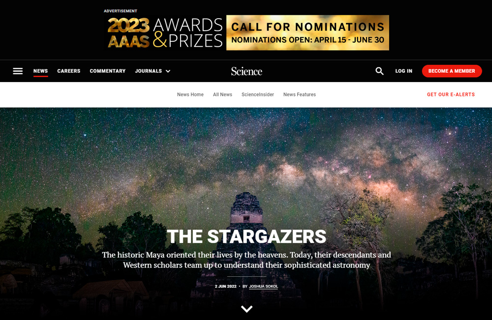 Recientemente la mundialmente famosa revista “Science publicó un artículo titulado “The Stargazers” sobre la civilización maya, el cual fue ilustrado por el astrofotógrafo Sergio Montúfar Codoñer quien es exalumno de Universidad Galileo.