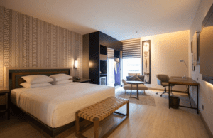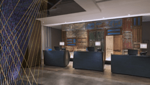 Hyatt Centric Guatemala City busca convertirse en “una puerta de ingreso a la ciudad más cosmopolita de la región”, que se interpretó en forma artística en la recepción del hotel, mediante una composición de auténticas puertas antiguas que juegan con tonalidades de maderas, formas y texturas.