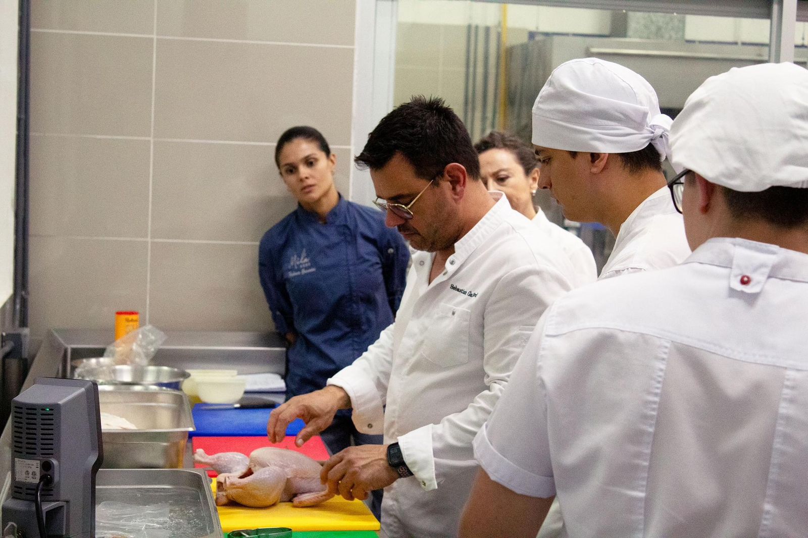 El chef Sebastián Gaillard enseña sus secretos a estudiantes.