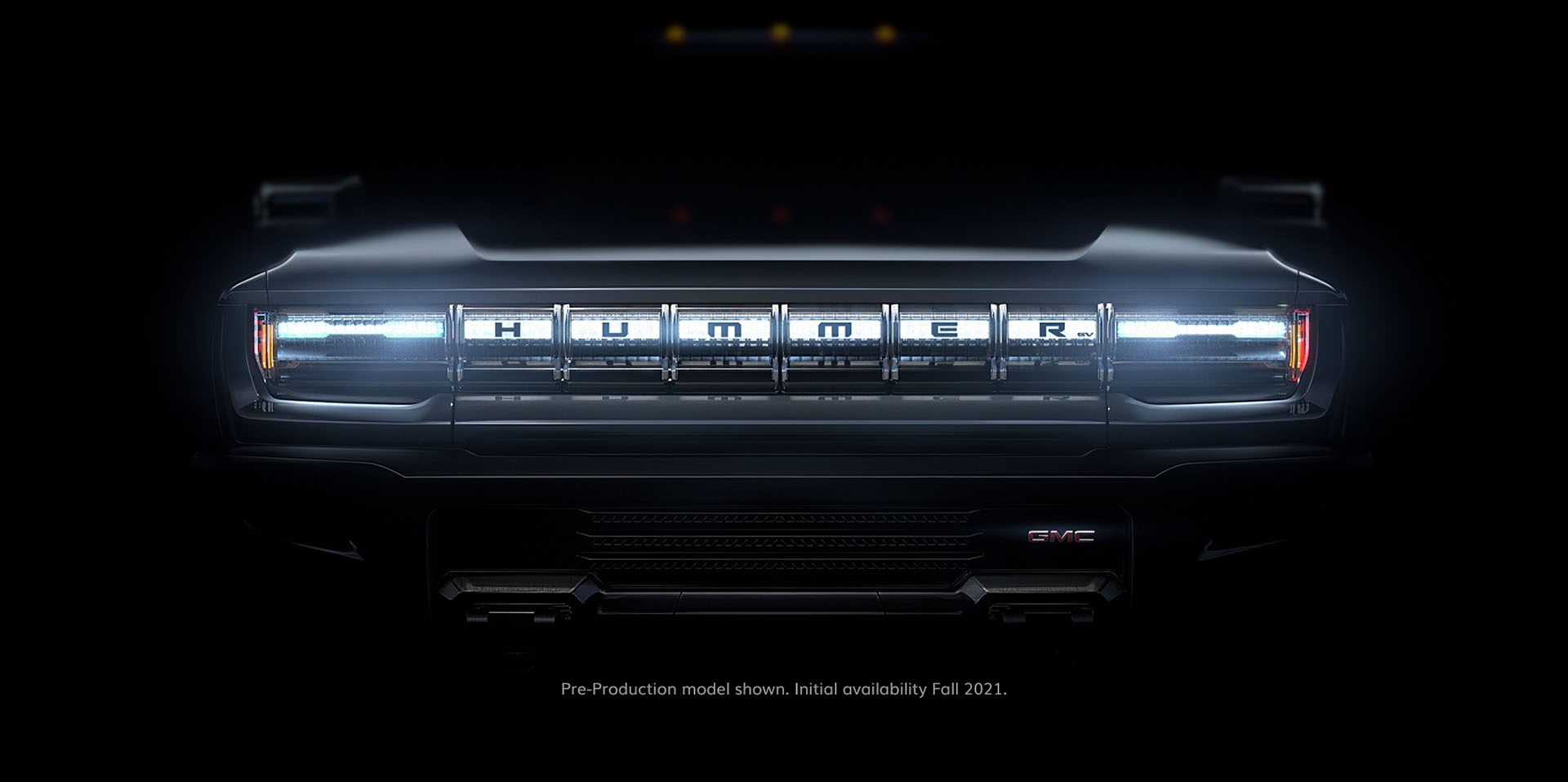 El fabricante de vehículos resucitó a Hummer en forma de vehículo 100% eléctrico. De su aspecto sin embargo no tenemos muchos detalles de momento. En las imágenes oficiales de General Motors tan sólo muestran la parte delantera denotando algunos rasgos característicos de los vehículos eléctricos. Por ejemplo, vemos una barra LED frontal iluminada en tonos azulados que deja ver a contraluz el nombre ‘HUMER’. Se aprecia también la rejilla de la parte frontal y en un lateral el logo de General Motors (GMC).