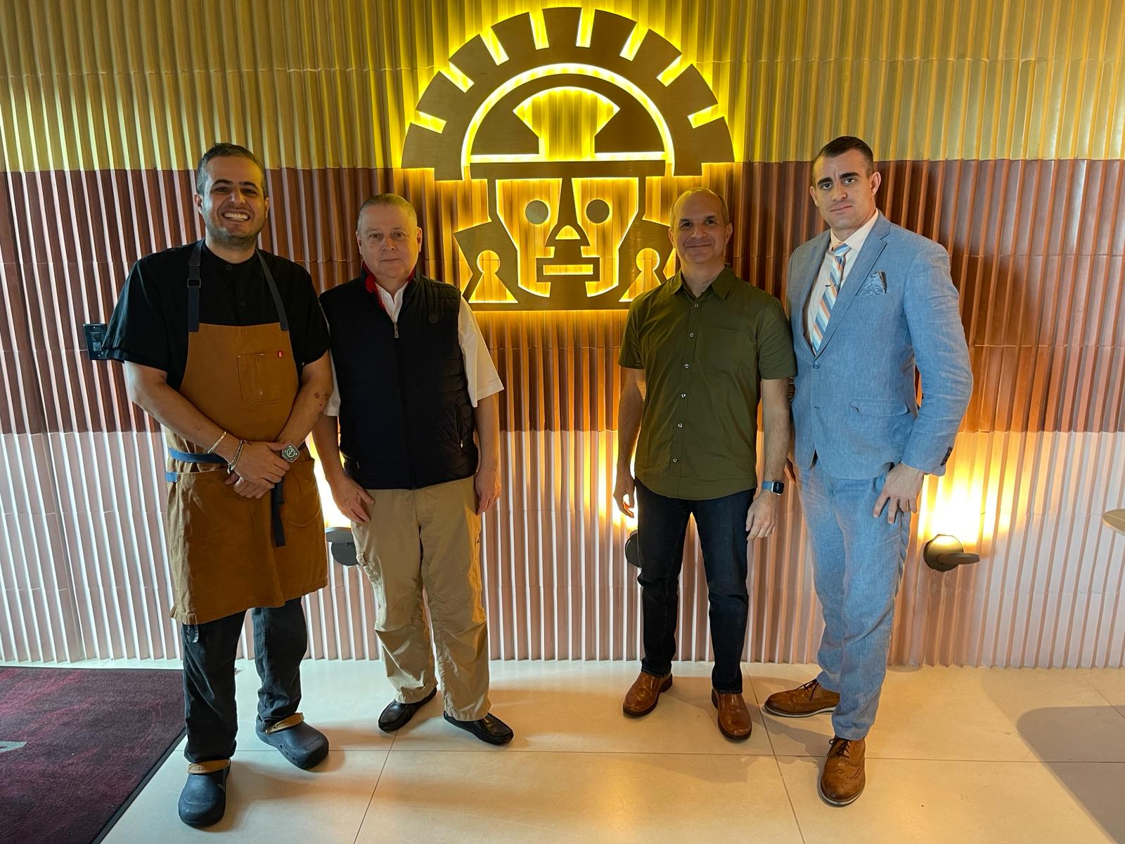Nuestro Chairman Roberto J. Argüello y presidente ,Alejandro Hurtado, fueron invitados a desgustar numerosos platos de Mayu. En la foto Demetrius Bruce Gerente General, el Executive Chef, Marco Llona y José Ibáñez, Head Waiter.