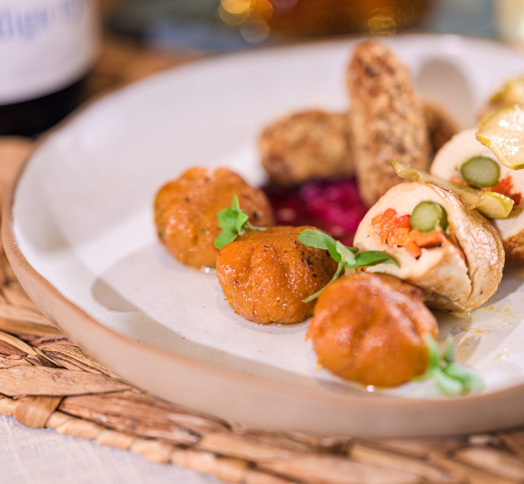 En el corazón de San José, Cultura 5 – Gran Hotel Costa Rica, Curio by Hilton ofrece el menú especial por solo US$55 impuestos incluidos (con bebida natural o gaseosa), una experiencia cálida y sofisticada con opciones como rollo de pavo relleno en salsa de manzana verde y Jack Daniel’s, y su pera al vino rellena de helado de calabaza, un postre que captura la esencia del otoño.