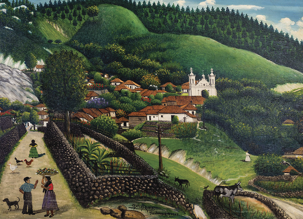 Velásquez es conocido por sus representaciones detalladas y coloridas de la vida y los paisajes hondureños.