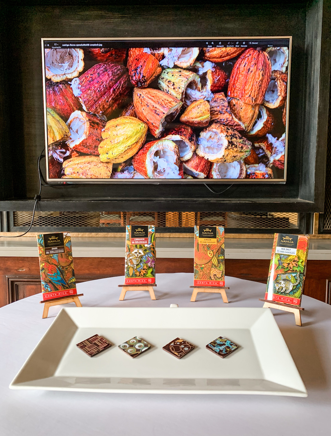 En las tardes café y chocolate los huéspedes son guiados por expertos durante una degustación de productos de la marca nacional Organikos, que representan las principales regiones cafetaleras de Costa Rica, así como cuatro fincas individuales, cada una con un sabor único que refleja el suelo, el clima y los estilos de procesamiento poscosecha exclusivos de esos lugares. Esta empresa se caracteriza por invertir todos sus beneficios en la regeneración del hábitat de las aves.
