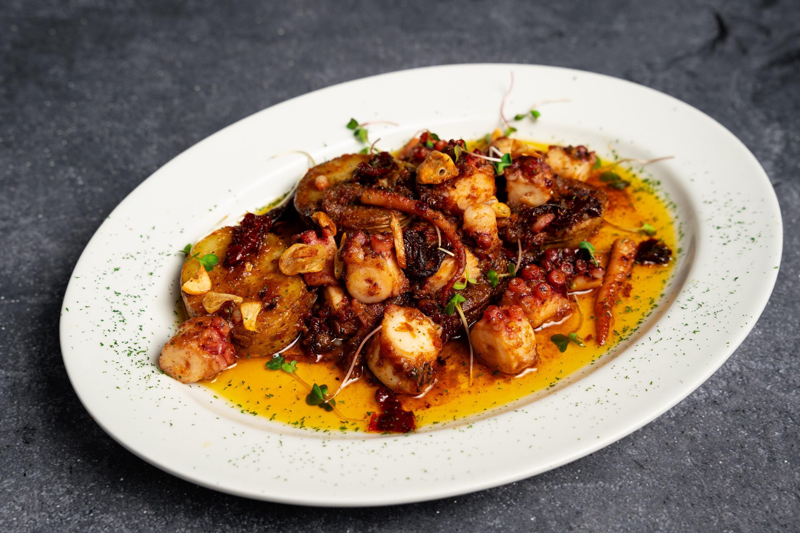 El cuidado por la calidad de los ingredientes es evidente: aceite de oliva importado de España, pulpo fresco del Atlántico y una selección de productos que amplían la experiencia más allá de lo local, para situarla en un contexto global.