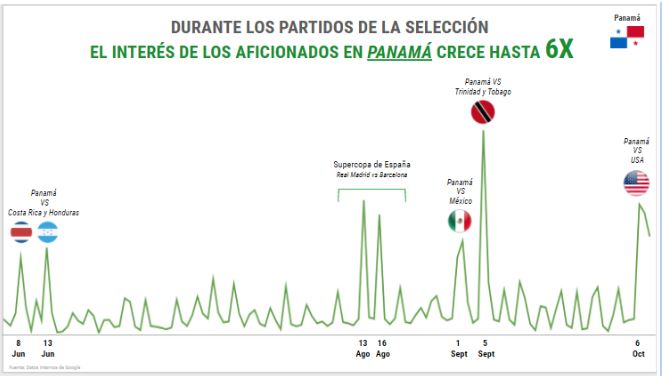 En septiembre y octubre, en las fechas de los partidos clave para la clasificación, se observaron picos sin precedentes en las búsquedas sobre Panamá y la selección».