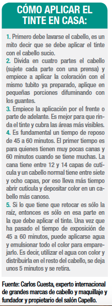 Este tipo de alternativas les ha facilitado a las clientas mantener el cabello sin canas o con un color homogéneo, gracias a que la preparación es personalizada. “Preparaba la emulsión de peróxido por aparte, los guantes, las botellitas con champú y acondicionador para que ellas se los aplicaran en casa. Esto me permitió crear mi propia línea de cabello”, asegura Cuesta.