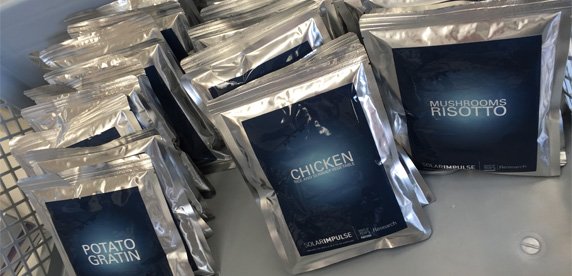 Mientras volaban, los pilotos comían alimentos nutricionalmente personalizados, todos investigados, desarrollados y suministrados por Nestlé, desde risotto de hongos y gratinado de patatas hasta yogures y cereales para el desayuno.