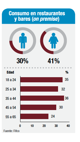 64 años oscila entre un 11% y un 15%; y el mayor pico de consumo se da entre los 18 y 24 años y el mínimo entre los 25 y 44 años. “La principal razón por la cual las mujeres prefieren este tipo de bebidas es el sabor”, dice.