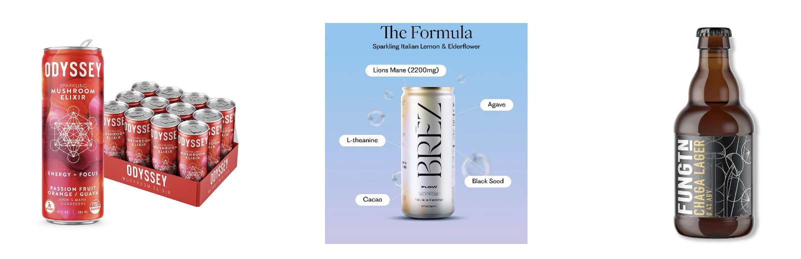 3. Bebidas funcionales: En este tipo de productos es donde encontramos la mayor cantidad de propuestas e innovación. Muchas compañías están actualmente trabajando en innovación de sus productos para ofrecer bebidas funcionales y suplementos de fácil consumo con extractos de hongos. Dentro de esta categoría, se ubican las aguas saborizadas y gasificadas, tés, e incluso cervezas sin alcohol.