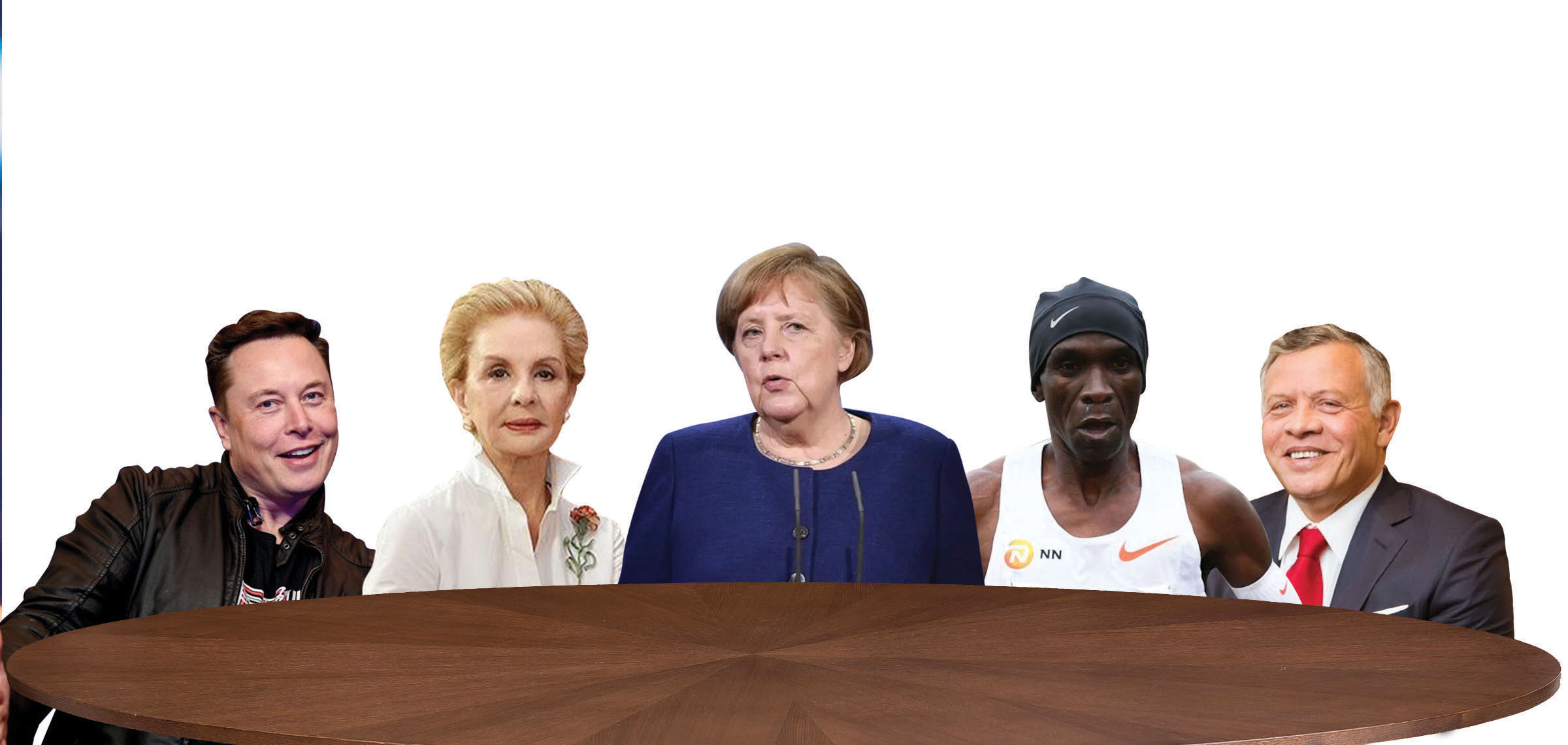 Elon Musk, Carolina Herrera, Angela Merkel, Eliud Kipchoge y Abdalá II de Jordania.