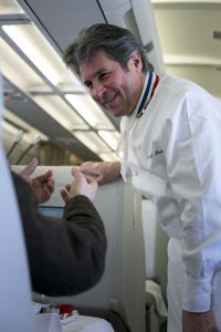 Para seguir sorprendiendo a sus clientes sin olvidar su papel de embajadora de la gastronomía francesa en el aire, Air France colabora con reconocidos chefs desde 2009 para elaborar sus menús, para la Business Class y La Première, en los vuelos que salen desde París. De esta manera, grandes nombres de la cocina colaboran con regularidad para crear un menú exclusivo con platos especialmente diseñados para ser degustados durante el vuelo.