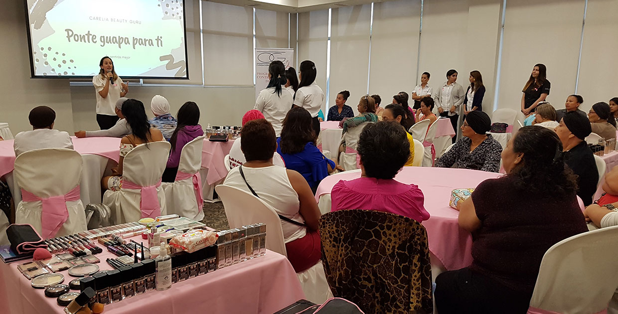 Las pacientes del programa de salud de la Fundación Ortiz Gurdian junto a la directora ejecutiva, Ana Margarita Ortiz de Horvilleur y Priscilla Urcuyo, coordinadora de la Clínica del Cáncer de Mama celebraron con un taller motivacional denominado “Ponte guapa para ti”, y una clase de maquillaje los 10 años de fundación de la misma, impartido por Nica Beauty Brands.