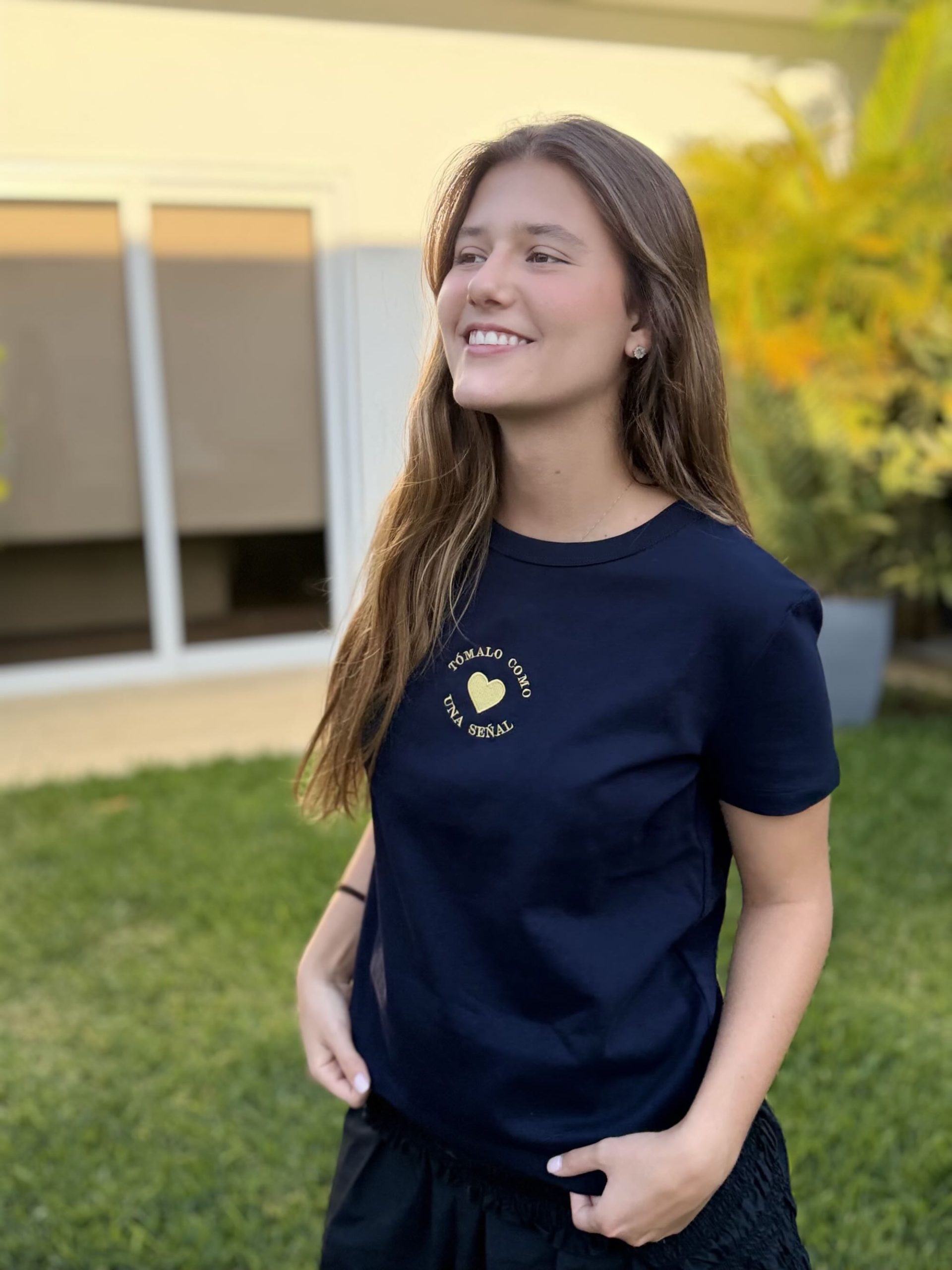 Cada diseño, desarrollado por ella, incorpora frases y símbolos relacionados con el amor propio, con la intención de que cada prenda funcione como una forma de acompañamiento en el día a día.