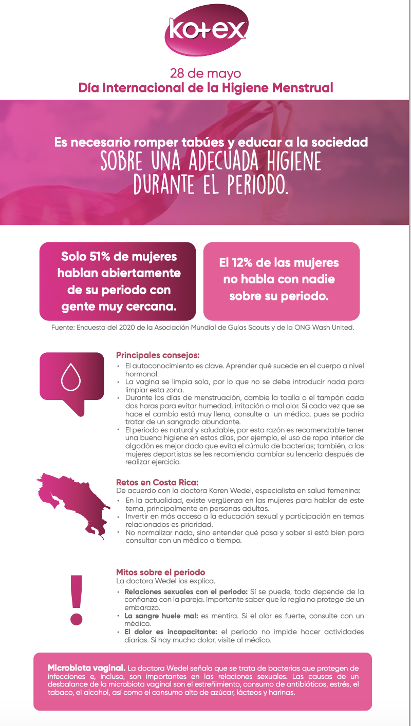 Kotex® cuenta con más de cien años de presencia en el mercado y se posicionó como la primera marca en romper paradigmas del periodo menstrual. Hoy, sigue enfocándose en cuestionar los estereotipos que todavía enfrentan las mujeres, mejorando el acceso a productos de primera necesidad en las áreas de educación, salud y bienestar en general.