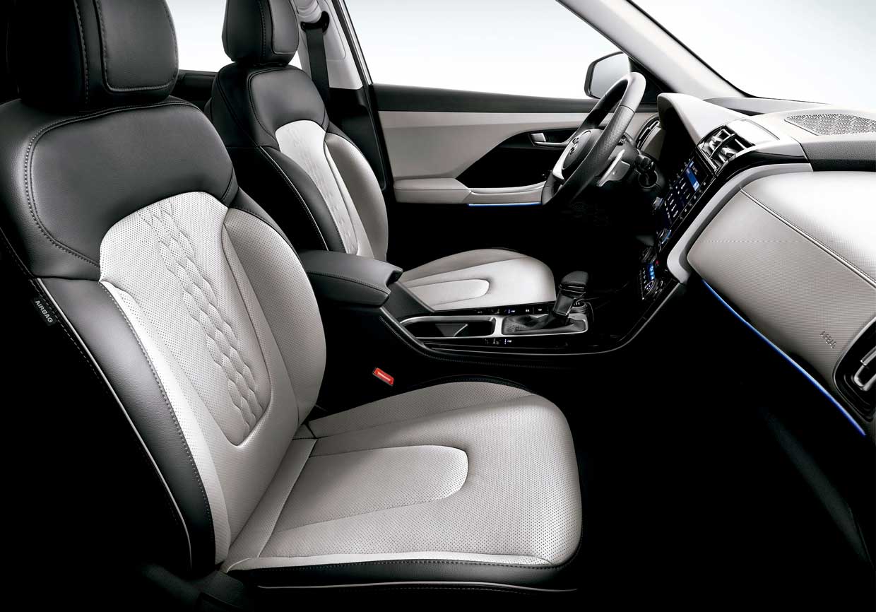 En cuanto a su equipamiento interior ambas versiones del Creta Grand vienen con sistema de infoentretenimiento con pantalla de ocho pulgadas, conectividad para Android Auto y Apple Car Play, reconocimiento e interacción por voz, botón de arranque, llave inteligente, salida de aire acondicionado para la segunda fila de asientos, asientos abatibles en la segunda fila 60/40 y tercera fila de asientos abatibles 50/50.