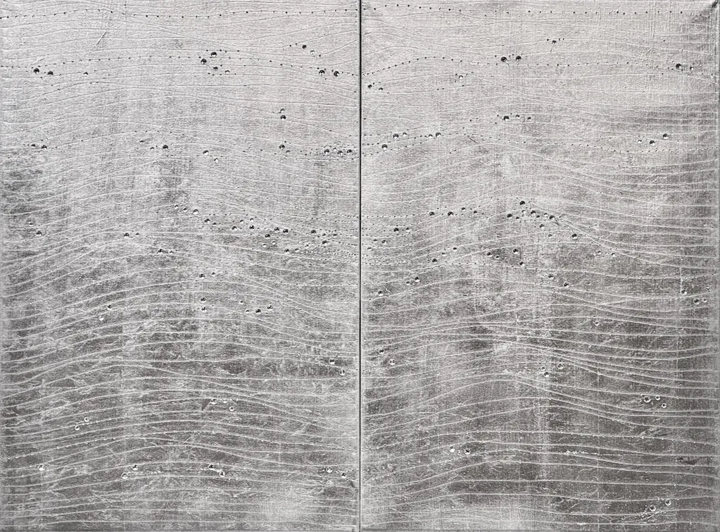 Esa decisión técnica transforma cada pintura en algo vivo: una imagen que, lejos de permanecer fija, parece activarse según la hora del día, la incidencia de la luz y la posición del observador.