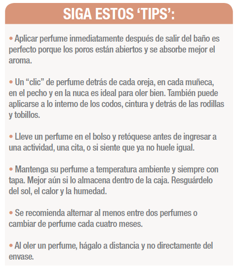 “Los perfumes tienen la peculiaridad de que nos remontan a un momento de nuestra vida o nos recuerdan a una persona específica (funcionan parecido a la música). Así nos “posicionamos” en la mente de quienes nos conocen. Parte de nuestra imagen es cómo olemos”, comenta Sara Zeledón, asesora de imagen.