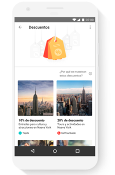 El tiempo en las vacaciones es valioso y una vez que reserve su vuelo y hotel, y llegue a su destino, es hora de disfrutar un buen rato. La nueva función de descuentos en Google Trips le ayuda a acceder de forma instantánea a las ofertas en entradas y tours en las principales atracciones y actividades. Reserve y ahorre en un recorrido por las ruinas mayas cerca de Cancún o en un acceso preferencial a la parte más alta de la Torre Eiffel en París. No importa a dónde vaya, Google Trips ayuda a encontrar y a acceder a cosas divertidas que puedes hacer en sus vacaciones sin tener que romper el bolsillo.