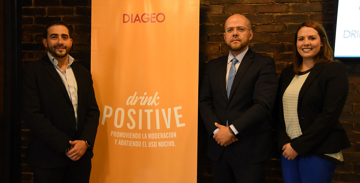 Rodrigo Fonseca, gerente de País de Diageo, Eduardo Méndez, embajador de Diageo sobre Consumo Responsable y Andrea Baigorria, gerente de Comunicaciones para Caribe y Centroamérica de Diageo.