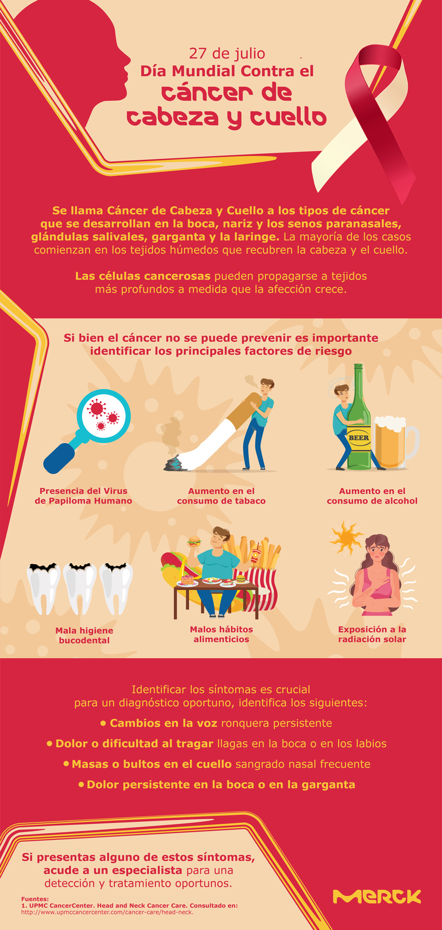 En el marco del Día Mundial contra el Cáncer de Cabeza y Cuello, Merck Centroamérica, compañía líder en ciencia y tecnología, se suma al llamado de contribuir con información para identificar oportunamente cualquier signo o síntoma de este padecimiento, además de invitar a la población a acercarse a los especialistas pues la detección temprana previene el avance de la enfermedad y promueve la oportunidad de contar con el tratamiento adecuado.