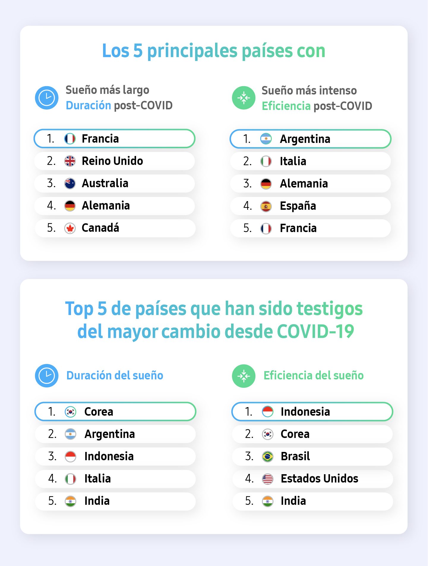 - Los usuarios de Corea han registrado uno de los mayores aumentos en la duración y la eficiencia del sueño durante la pandemia, pero aun así han permanecido por debajo del promedio mundial.