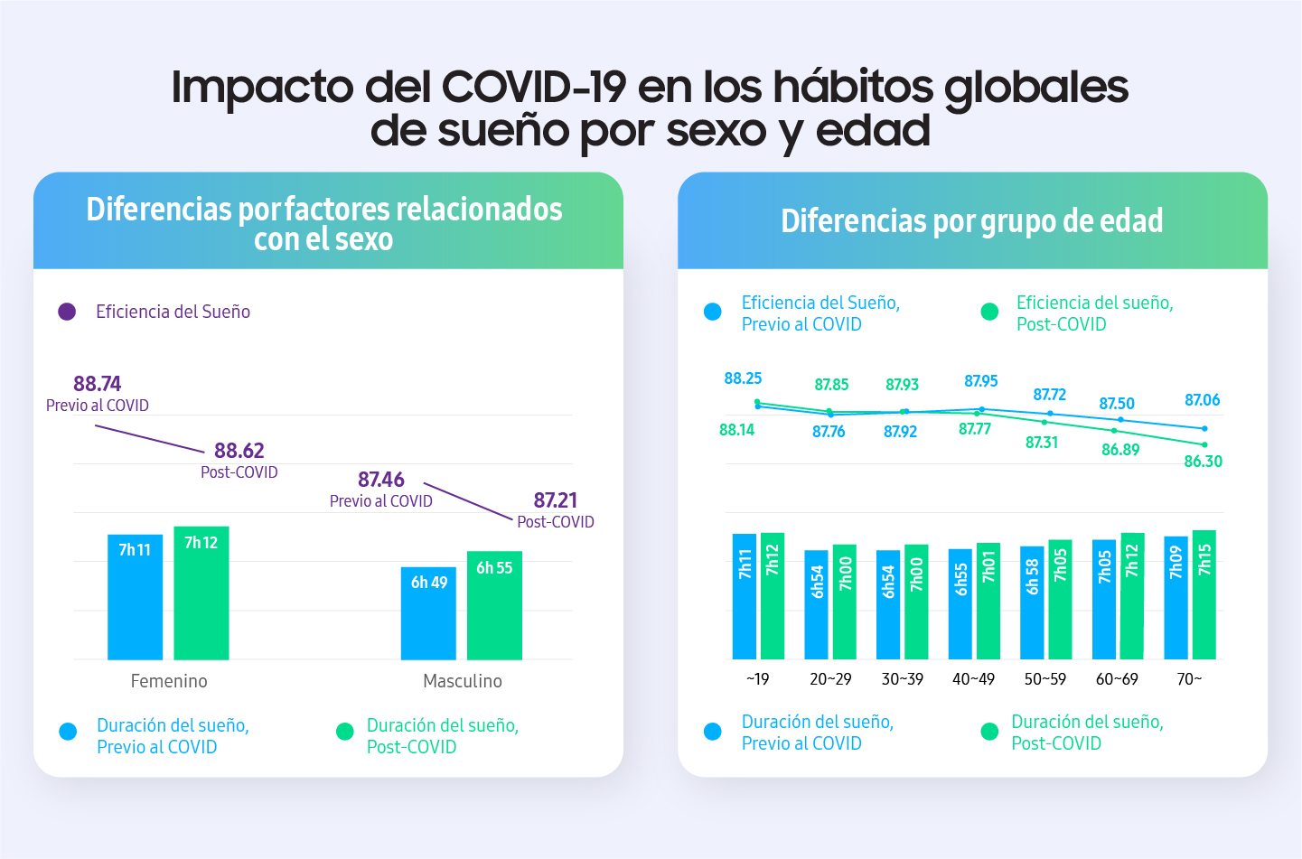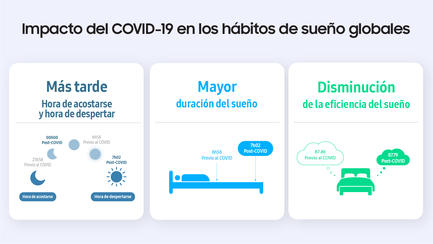 Conozcamos más de cerca a cómo la duración y la eficiencia del sueño se tornaron distintas en todo el mundo desde el comienzo de la pandemia a través de los estándares de los usuarios globales de Samsung Health.