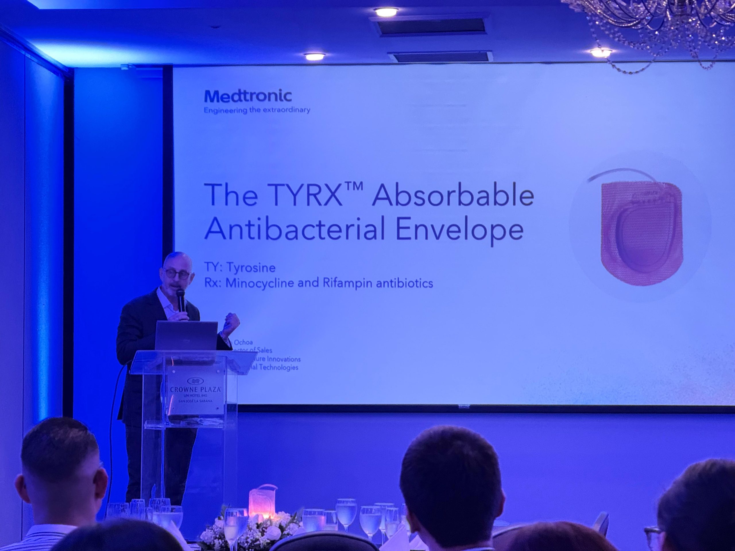 TYRX es una malla especial con antibiótico que el cuerpo absorbe de forma natural. Se coloca alrededor del dispositivo durante la cirugía y libera protección antibiótica en el período crítico posterior al procedimiento, reduciendo el riesgo de infección antes de desaparecer en el organismo. La tecnología fue desarrollada por la multinacional estadounidense Medtronic y cuenta con respaldo de evidencia clínica internacional.