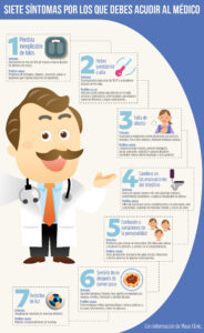 6. Sentirse lleno después de comer poco: Si regularmente se sientes lleno antes de lo normal o después de comer menos de lo usual, hagase un examen médico. Esta sensación, conocida como saciedad temprana, también puede ir acompañada por náuseas, vómitos, hinchazón o pérdida de peso. En este caso, asegúrese de decirle al doctor que también sufres estos síntomas.