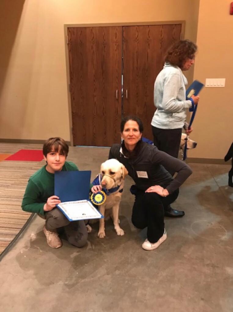 Maddy con Mary y Mattew Argüello el día que la entregaron después de 18 meses de entrenamiento.