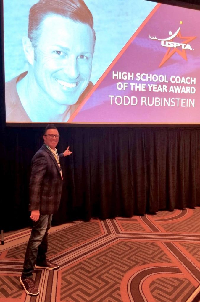 Oriundo de la ciudad de Miami, bueno, para ser más especifico, de la zona de Hollywood, Florida; Todd Rubinstein, de 49 años, es un hombre que vive para ayudar a otros. Es un líder que aprovecha su personalidad eléctrica y motivación inagotable para buscar constantemente distintas maneras para aportarle a la formación de jóvenes en la zona que lo ha visto crecer y convertirse en un profesional polifacético. Profesor de educación especial en escuelas secundarias por 21 años y contando, filántropo, entrenador de tenis en distintos clubes sociales y de manera privada, entre otras actividades, aunque nos vamos a enfocar en su trayectoria como entrenador de equipos de tenis en varias secundarias del Sur de Florida. En dicha ocupación se ha mantenido desde el 2001 y ha logrado recibir premios mayores por su labor, incluyendo ser nombrado por la asociación profesional de tenis de los Estados Unidos (USPTA, por sus siglas en inglés) como el mejor entrenador de tenis de secundaria de los Estados Unidos en el 2018, y ha impactado de manera positiva a muchos de los estudiantes-atletas a los que ha entrenado.