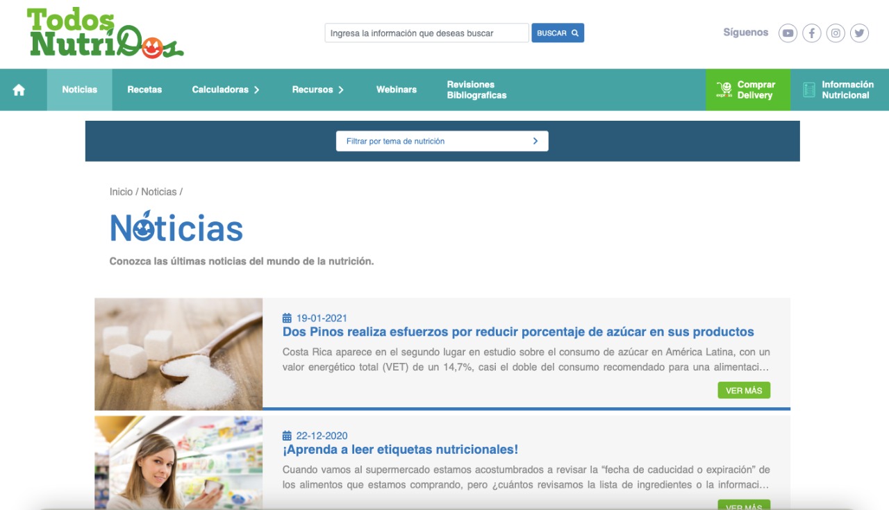 Todos NutriDOS ofrecerá información mediante recursos como webinars, revisiones bibliográficas, presentaciones, noticias, videos, entre otros y cuenta con el respaldo de reconocidos profesionales en la salud con amplia trayectoria académica.