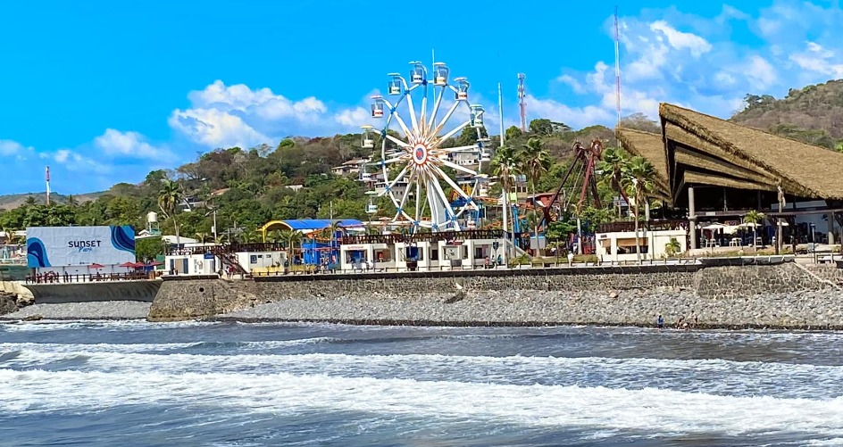 1. Sunset Park, Las Playas son el primer destino por excelencia durante esta época, en la zona central del litoral salvadoreño se encuentra, Sunset Park, el primer parque de atracciones en el país que se ubica al nivel del mar donde se disfruta de la playa y diferentes amenidades. Está ubicado en el Puerto de La Libertad y es parte de la franja costera marina de Surf City. Aquí puedes disfrutar de los juegos mecánicos desde US$1, además de comer rico en las diferentes opciones de restaurantes con las que cuenta el parque.