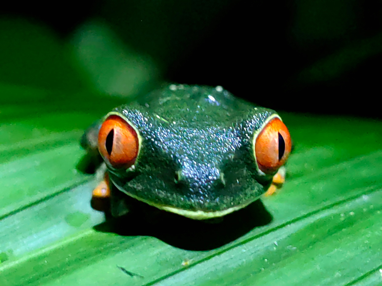 Frogs Paradise es tal cual su nombre lo dice porque en una caminata nocturna es posible ver ranas de todo tipo, color y tamaño, además de otros anfibios y animales como perezosos, monos, aves, pero las ranas son “la especialidad de la casa”. En la propiedad de Miguel Soto hay más de 20 especies de ranas. Allí también puede disfrutar de un 20% de descuento, solo llame al 8634 7402 para más detalles.