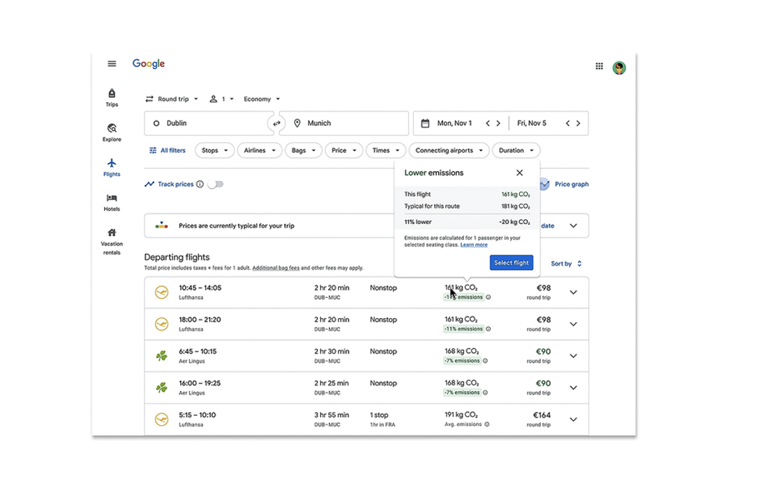 Ahora es posible tomar decisiones de viaje más sostenibles con nuevas herramientas de  Google