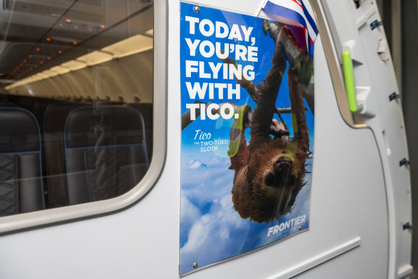 “Nos sentimos sumamente complacidos y honrados por recibir un especial vuelo de Frontier Airlines, decorado en su cola con la hermosa imagen de ‘Tico’, un perezoso de dos dedos. Esta línea aérea sobresale por embellecer sus aeronaves con especies únicas o en peligro de extinción y en este caso, sentimos orgullo por apreciar a nuestro símbolo nacional. Sin duda este tipo de iniciativas conjuntas refuerzan los objetivos de nuestro modelo turístico sostenible que apuesta a la conservación del ambiente, en especial porque casi el 6% de la biodiversidad del mundo se encuentra en Costa Rica y ahora el perezoso ‘Tico’ será un embajador de nuestra naturaleza cada vez que surque los aires en la cola de este avión de FRONTIER”, manifestó William Rodriguez, ministro de Turismo.