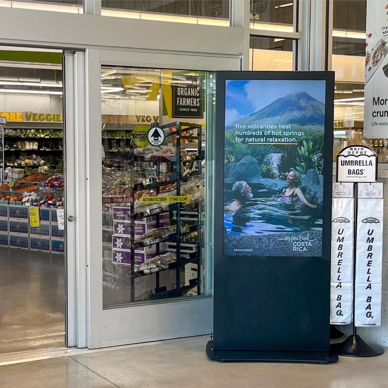 Exhibiciones digitales en tiendas. Los clientes que visiten los supermercados Whole Foods en Estados Unidos pueden disfrutar de exhibiciones digitales que ofrecen información enriquecedora sobre Costa Rica. Estas exhibiciones les permiten descubrir desde cómo cinco volcanes calientan cientos de aguas termales para una relajación natural, hasta las maravillas naturales del país.