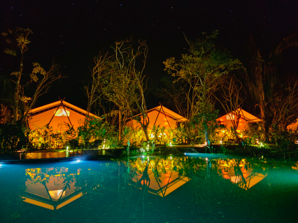 Tocu Tent Camp está diseñado con prácticas sostenibles que preservan la belleza natural de Caño Negro. Las instalaciones se integran armoniosamente con el entorno, y la cocina ofrece un viaje a la historia gastronómica de Costa Rica, utilizando productos frescos y locales, muchos de ellos cultivados en la finca del campamento.
