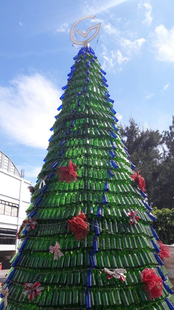 Este árbol   se localiza en el interior de la Vidriera Centroamericana y es otro ejemplo de que con las diferentes presentaciones de botellas de vidrio se pueden crear obras de arte para Navidad