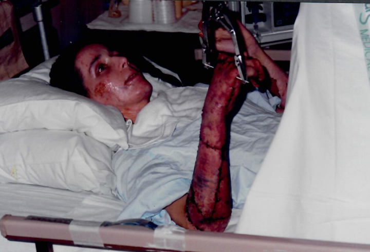 Vivian Pellas en su etapa de recuperación después del accidente.