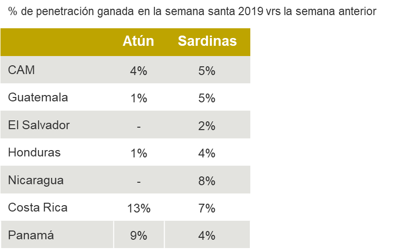 Etiquetas: atún / Centroamérica / cuaresma / dieta / Kantar / sardinas / semana santa