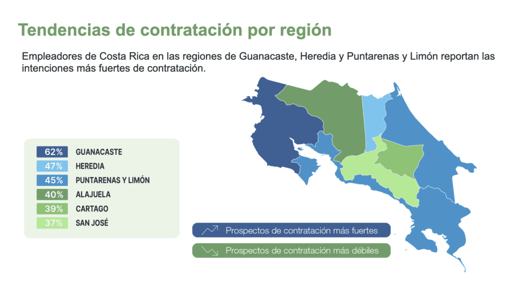 Geográficamente, los mercados laborales más activos se esperan en las regiones de Guanacaste, Heredia y Puntarenas y Limón.