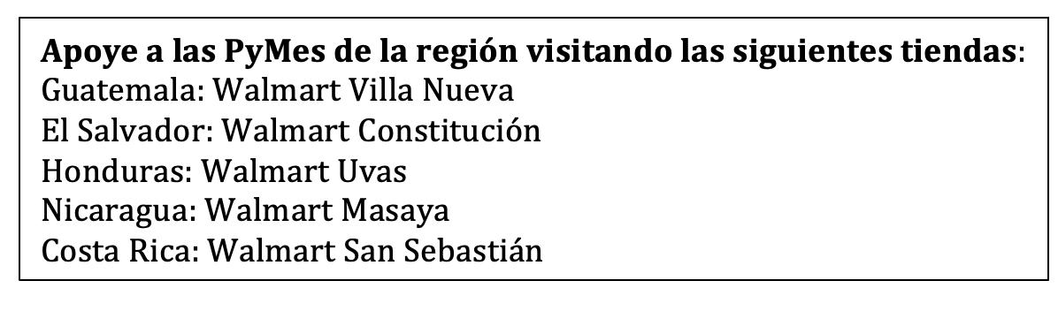 Una oportunidad única tendrán 50 pequeñas empresas centroamericanas para exponer sus productos en las tiendas de Walmart en los cinco países de la región en una nueva edición del Mercadito Pymes.
