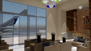 Imagen de las salas de abordaje de la futura terminal privada del Aeropuerto Juan Santamaría.