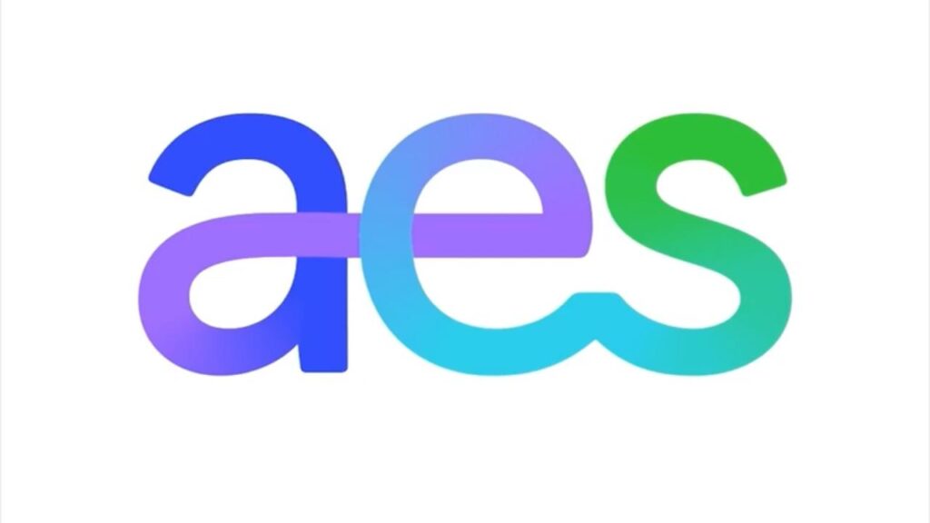 El logo tiene colores degradados en morado, turquesa y verde en una línea que se va transformando en diferentes figuras que reflejan los ejes estratégicos de AES, como las oportunidades, las personas, las tecnologías y el impacto, así como los pilares y valores de liderazgo en la transición renovable, trabajo conjunto, la aplicación de la innovación, el desarrollo del talento y la integración de la digitalización.