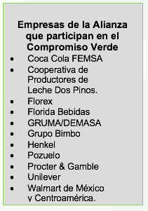 En el programa Compromiso Verde, liderado por Walmart, participan las empresas de esta Alianza regional, más compañías como Agrocomercial San Roque, Kimberly-Clark y la Distribuidora y Logística DISAL que asumieron el reto de brindar poco más de 140 artículos sostenibles, tanto en el área de consumo como en abarrotes.