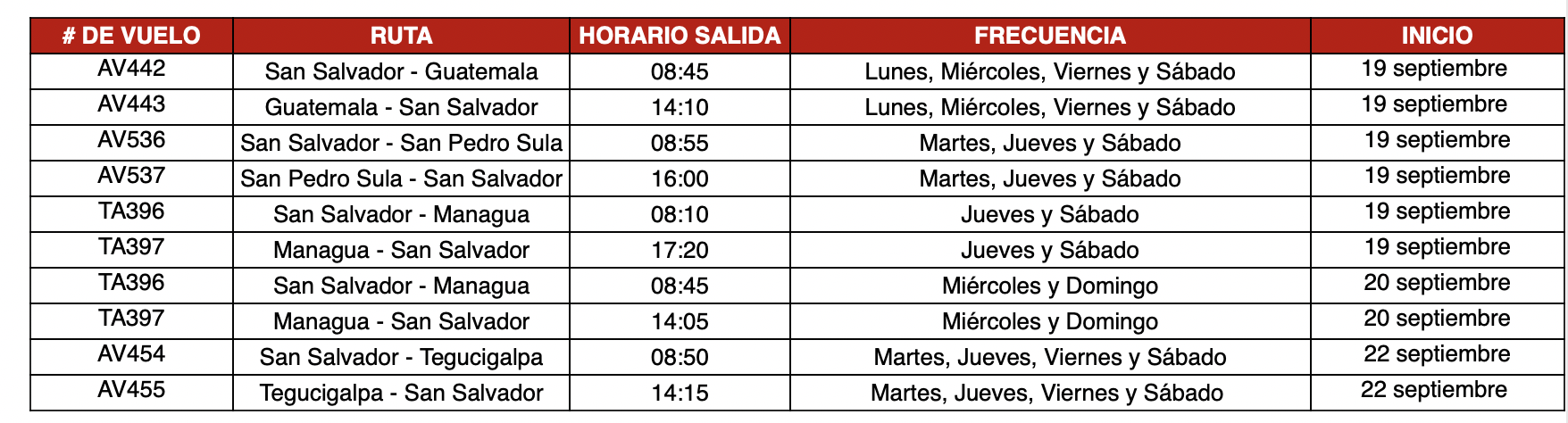 Inicialmente volará a 9 destinos en Centroamérica y Estados Unidos, entre los que están Guatemala, Tegucigalpa, San Pedro Sula, Managua, Miami, Los Ángeles y Nueva York.
