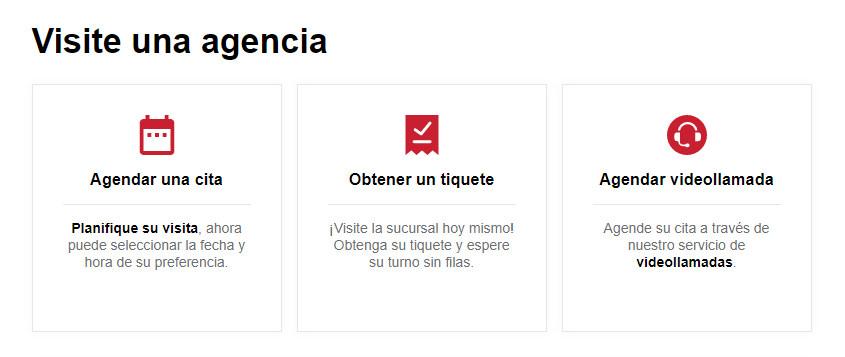 Algunos de los trámites que se pueden realizar mediante videollamada son: accesos a Banca en Línea y todas sus gestiones relacionadas, gestiones de servicio sobre cuentas y tarjetas de crédito, consultar saldos y todos aquellos trámites que habitualmente se realizan en una sucursal física y que no requieren de la intermediación de una firma, documento o bien físico; por ejemplo: la firma de un contrato, recoger un Token o una tarjeta.